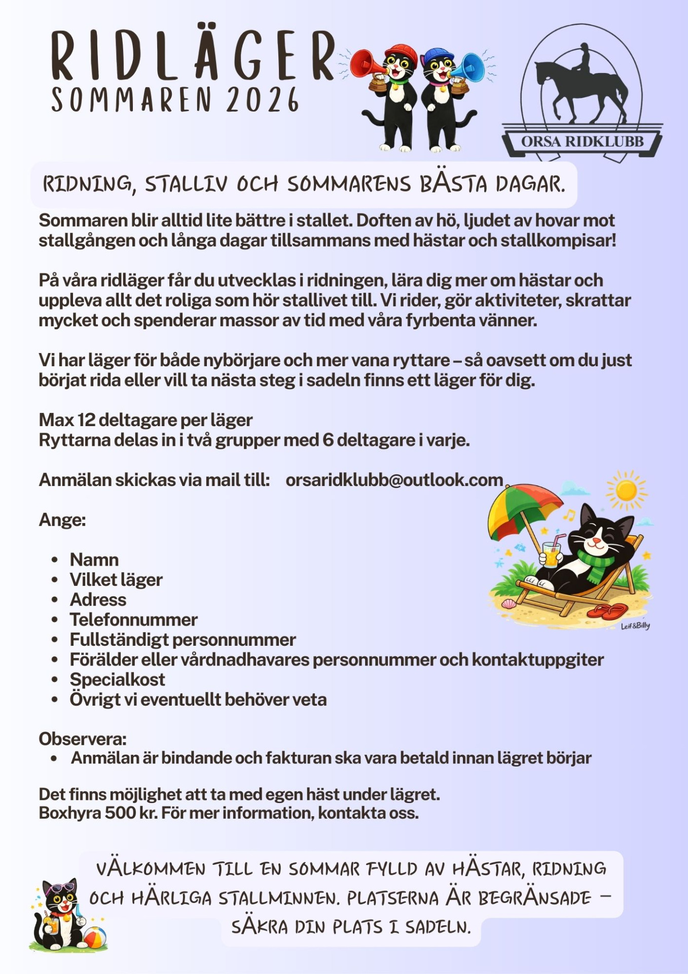 Kontakt: orsaridklubb@outlook.com // Tel. 073-337 10 96 // Ridhusvägen 1, 794 31 ORSA